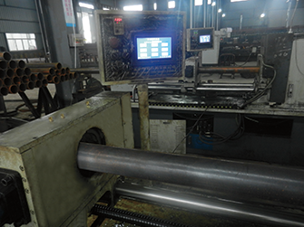 檢查通過的鋼管被送入自動管加工機。管材切斷后,對鏜雙側(cè)止口,高壓氣體清掃管內(nèi)鐵屑和雜質(zhì)。
