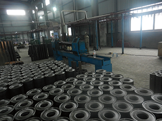 檢測合格的托輥經(jīng)除灰、除油等表面處理后,進入由懸掛鏈式輸入機,靜電發(fā)生裝置,噴漆通道。干燥設(shè)備構(gòu)成的靜電噴漆干燥流水線,完成表面涂裝。寶科機械托輥使用的涂料中添加有防銹成分,干燥后所形成的漆膜堅硬。耐水,耐油,耐酸,附著力強,美觀精致,適用各種工況。